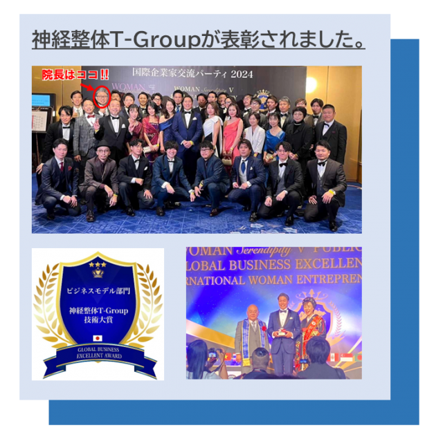 国際企業評価機構から神経整体T-Groupの技術が認められて、表彰されました👏✨